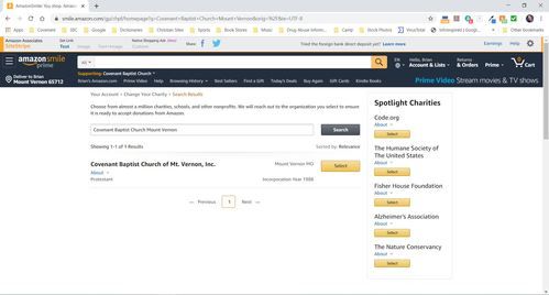 That's it. Now, every time you order by using AmazonSmile, Amazon will send a small portion of the amount of your order to Covenant. If you have any questions about using AmazonSmile, contact us at info@covenantbaptistmv.org.